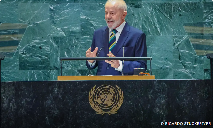 Presidente Luiz Inácio Lula da Silva durante a abertura da Assembleia Geral da ONU em Nova York — Foto: Ricardo Stuckert/PR