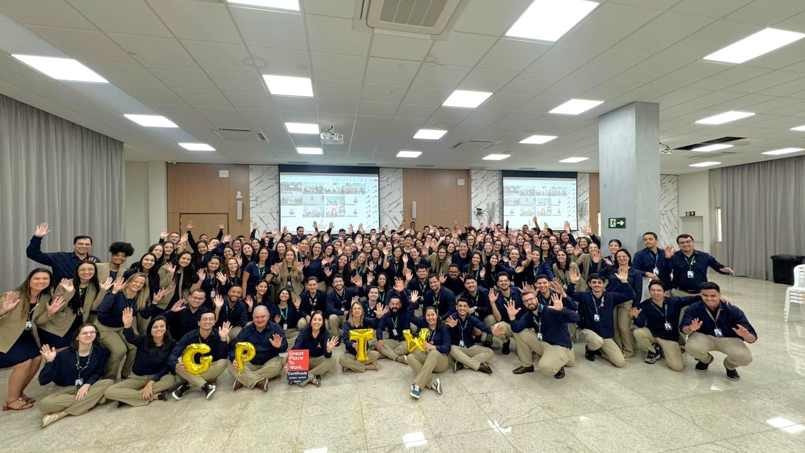 Equipe do Sicoob Coopacredi celebra a conquista da certificação GPTW 2025. Foto: Sicoob Coopacredi