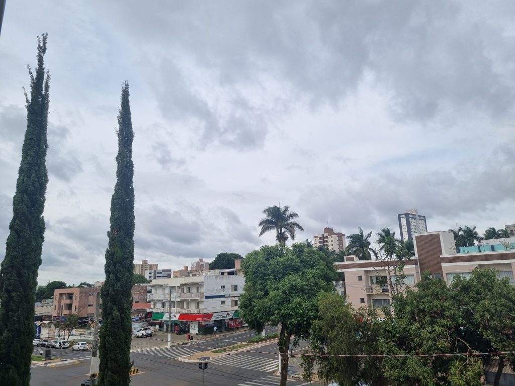 A madrugada terá céu com muitas nuvens. A manhã apresenta períodos de sol com poucas variações. À tarde, o sol aparece entre nuvens mais intensas. A noite registra nebulosidade moderada. A condição geral mantém estabilidade atmosférica.