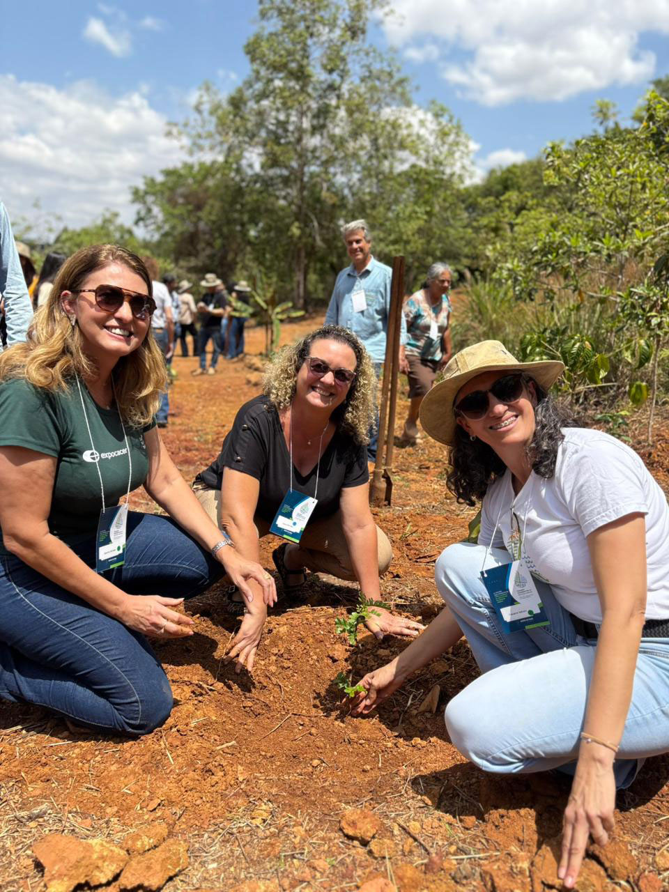 Ato simbólico: mulheres no campo plantando mudas. Foto: Ascom CCA
