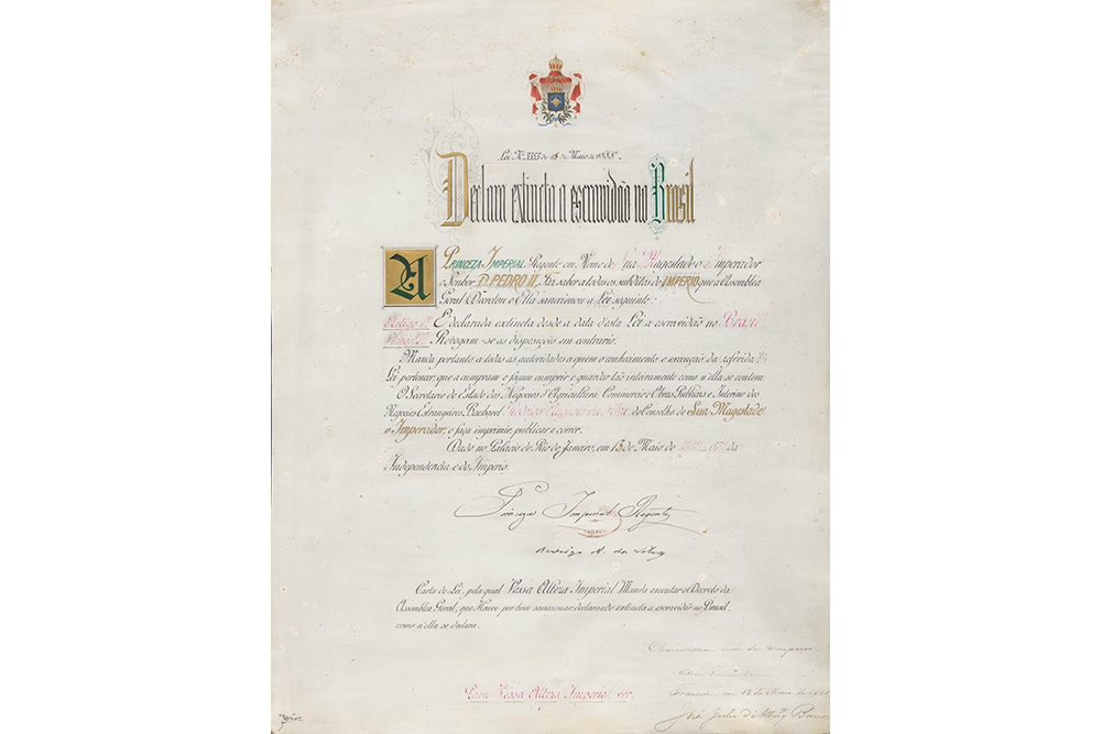 Publicada em 13/5 de 1888, a Lei Áurea não previu qualquer medida de integração das pessoas negras à sociedade ou de reparação social (Crédito: Arquivo Nacional / Divulgação)