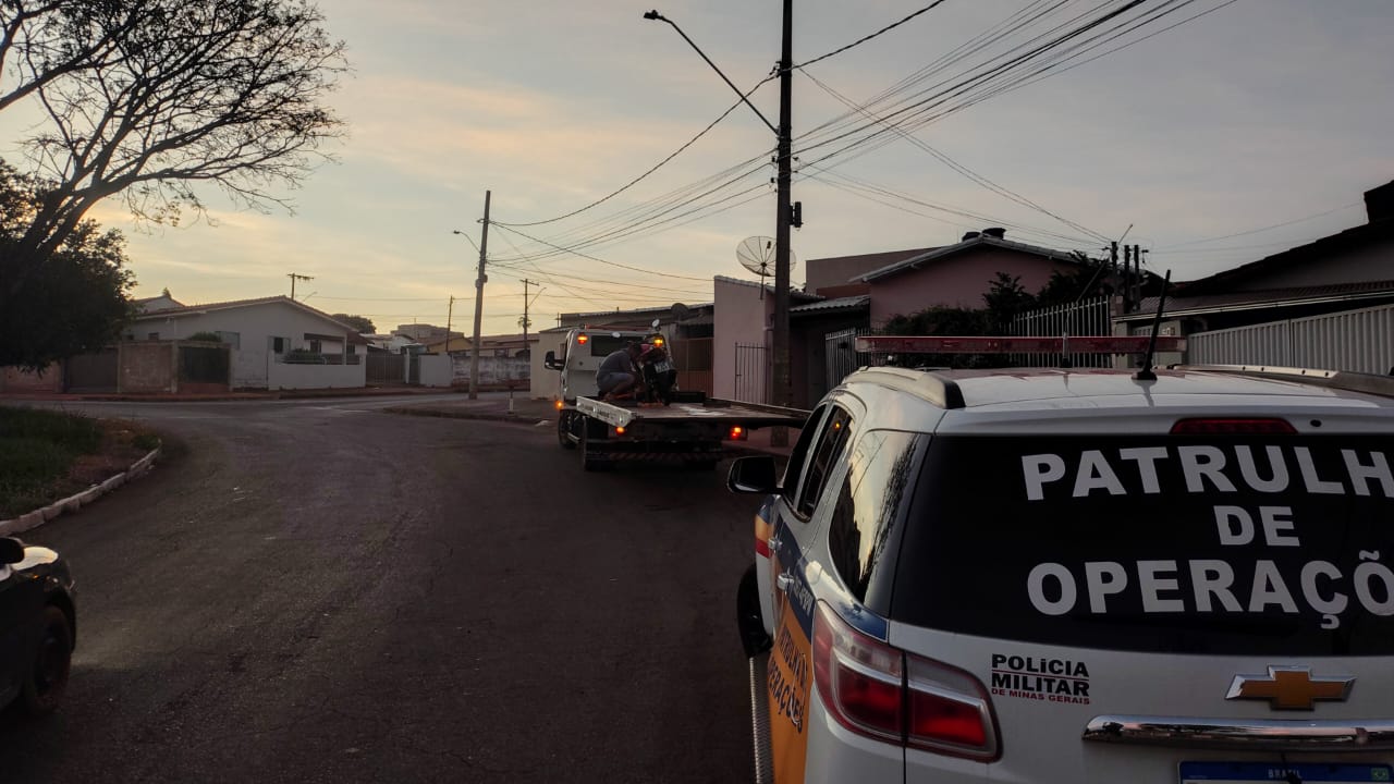 A motocicleta foi removida ao pátio credenciado por falta de condutor habilitado