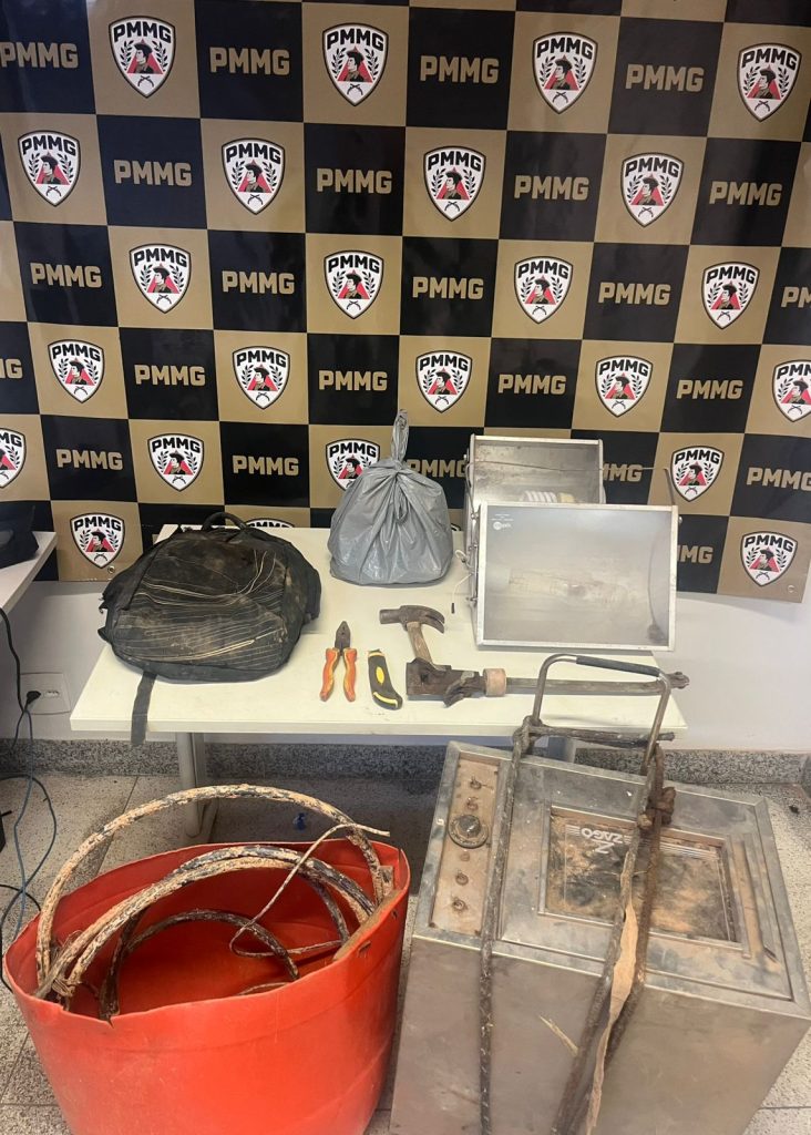 holofote e uma bolsa com ferramentas diversas. Todo o material foi apreendido para