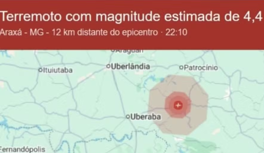 A cidade de Araxá, localizada no estado de Minas Gerais, registrou um terremoto de magnitude 4.4 na noite da última sexta-feira. O evento sísmico ocorreu e mobilizou as autoridades municipais para a adoção de medidas preventivas imediatas. A prefeitura da cidade emitiu um comunicado oficial à população após a ocorrência.