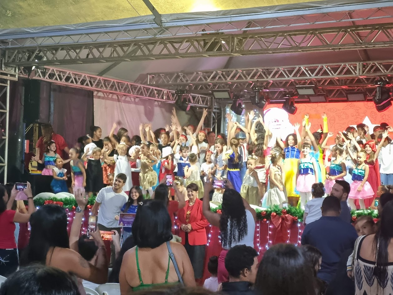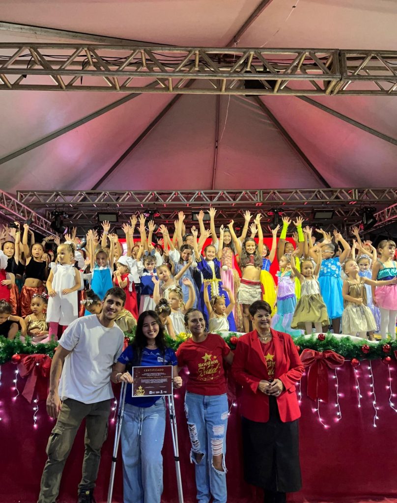 A abertura da noite foi conduzida pela Escola de Dança Plié. O grupo apresentou coreografias preparadas para o período natalino. A apresentação fez parte da agenda cultural do município. A atividade integrou alunos e professores da escola. O público acompanhou a apresentação do início ao fim.