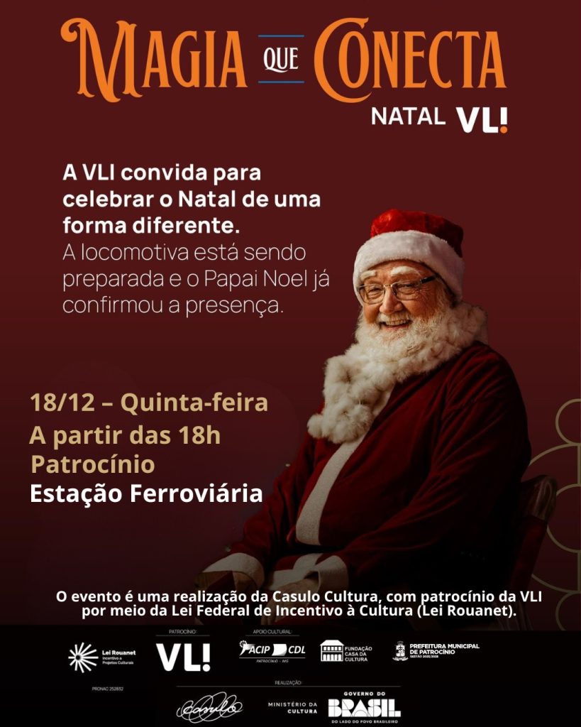 O Trem Natalino é uma realização da VLI. O evento conta com apoio da Prefeitura Municipal de Patrocínio. Também participam a Fundação Casa da Cultura Dr. Odair de Oliveira e a ACIP/CDL. A programação integra o calendário natalino da cidade. As atividades seguem até o encerramento oficial do evento.