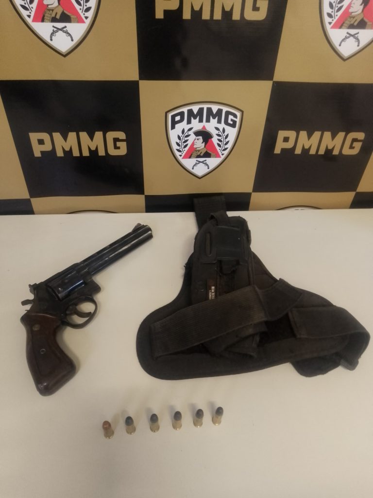 Ao chegarem à residência, os militares perceberam que o autor tentou se esconder nos fundos do imóvel ao notar a aproximação policial, sendo localizado após varredura no local. Durante buscas, foi encontrado um revólver calibre .38, municiado com seis munições intactas, além de um coldre. A arma não possuía registro legal. O material foi apreendido conforme os procedimentos. O autor recebeu voz de prisão no local.