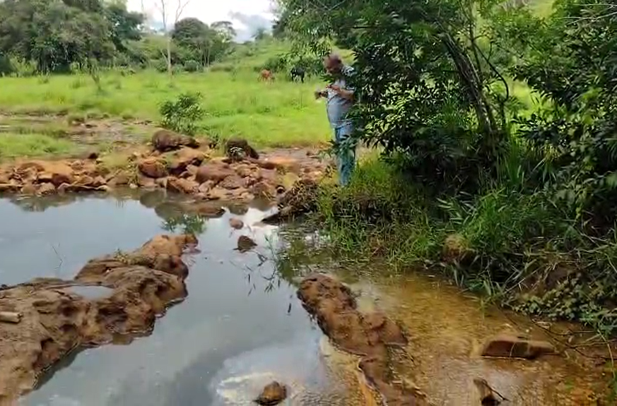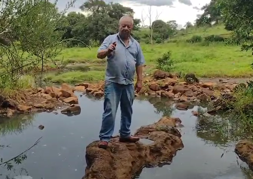 Rubens Rocha Machado visita a região de Bebedouro e mostra a fonte de água sulforosa. Reprodução: Marelizio Cortes