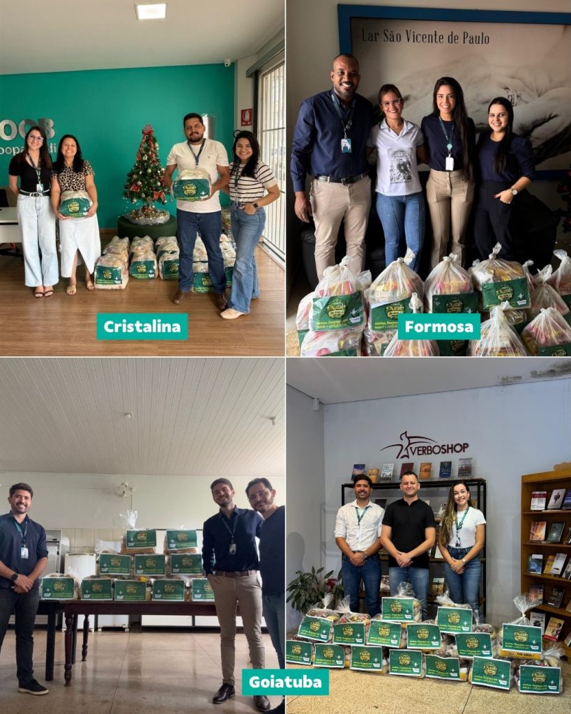 O Sicoob Coopacredi concluiu em dezembro os repasses da campanha Natal de Amor 2025, que arrecadou 12,4 toneladas de alimentos. Os donativos foram organizados em 1.100 cestas básicas destinadas a instituições que atendem famílias em situação de vulnerabilidade social. A ação abrangeu municípios de Minas Gerais, Goiás e Bahia.