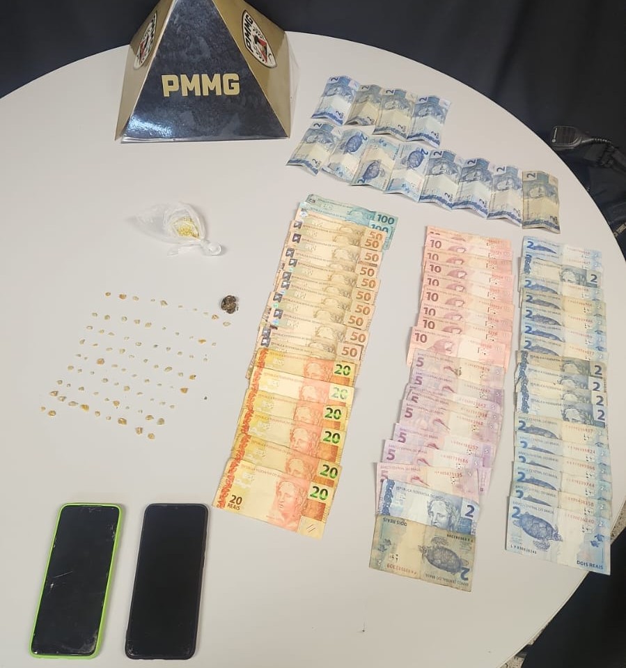 Nas diligências complementares foram apreendidas 82 pedras de crack prontas para a comercialização e uma porção adicional de farelo da mesma droga. A equipe também localizou uma bucha de maconha e a quantia em espécie de 1.066 reais proveniente da venda de materiais. Dois aparelhos telefônicos foram recolhidos para perícia técnica com o intuito de identificar outros envolvidos na rede de distribuição local. Todo o material ilícito e o dinheiro foram levados para a sede do 46º Batalhão para a confecção do registro. Os autores foram encaminhados à Delegacia de Polícia Civil para o encerramento do auto de prisão em flagrante.