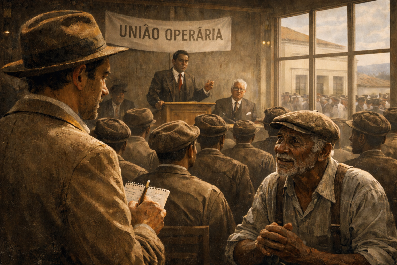 Continuei anotando. Pacheco não pregava revolta. Pregava disciplina. Louvava o operário “manso e passivo”. Fiz uma pausa. A ponta do lápis hesitou. Pensei. Sabia que aquelas palavras, impressas no dia seguinte, seriam lidas com respeito — e também com silêncio. O tipo de silêncio que pesa mais do que aplauso.