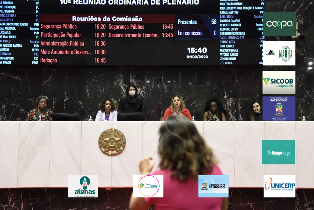 No centro, as deputadas Leninha, Beatriz Cerqueira e Andréia de Jesus, autoras da lei – Arquivo ALMG. Foto: Guilherme Dardanhan