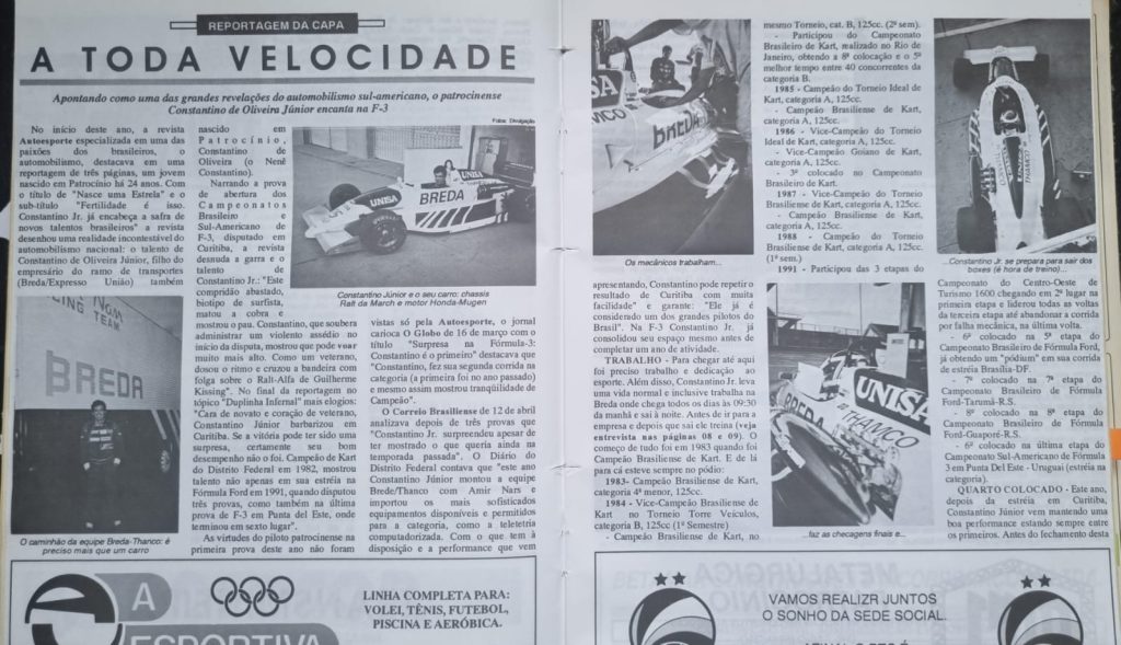 Em setembro de 1992, Constantino Júnior concedeu entrevista à revista Presença, publicação que deu origem à Rede Hoje, quando falou sobre sua trajetória no esporte e sua relação com o automobilismo.
