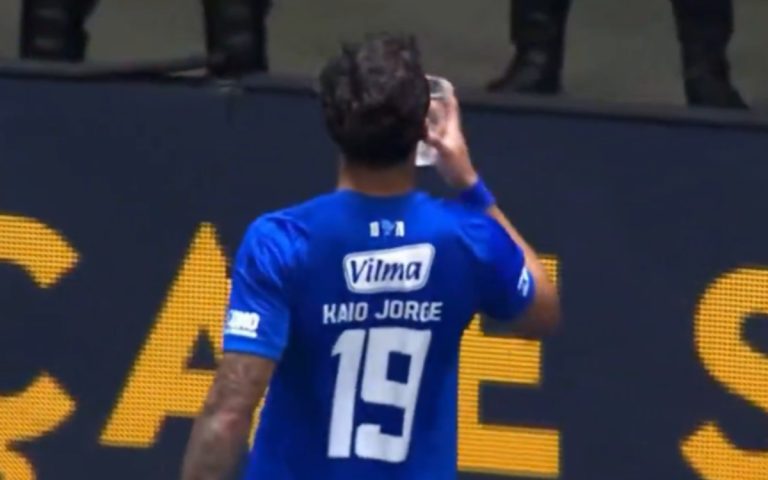 Kaio Jorge, em comemoração do gol contra o Atlético-MG (Foto: Reprodução/GETV)
