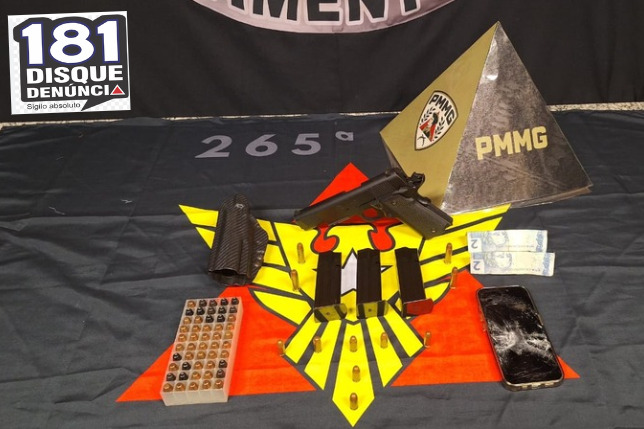 Autor tentou destruir provas durante a abordagem após ser interceptado com pistola calibre .40 e dezenas de projéteis. Foto: 46BPMMG