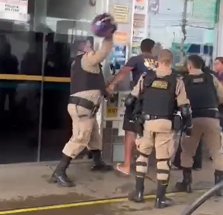 No posto, os policiais deram início à abordagem para fiscalização. Segundo o boletim de ocorrência, o condutor não atendeu às determinações repassadas pela equipe. Houve resistência à abordagem e confronto físico entre o motociclista e os policiais. Durante a tentativa de contenção, o envolvido tentou se desvencilhar e fugir do local. A movimentação atraiu a atenção de pessoas que estavam no posto.