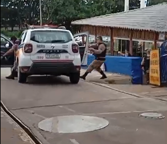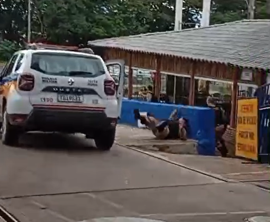 Mesmo com a chegada de reforço, o motociclista continuou resistindo, conforme relato policial. Ele tentou fugir a pé após abandonar a motocicleta no local. Para contê-lo, os policiais utilizaram dispositivo de incapacitação neuromuscular. O envolvido foi imobilizado e algemado ainda no posto de combustíveis. Imagens da ação passaram a circular nas redes sociais.