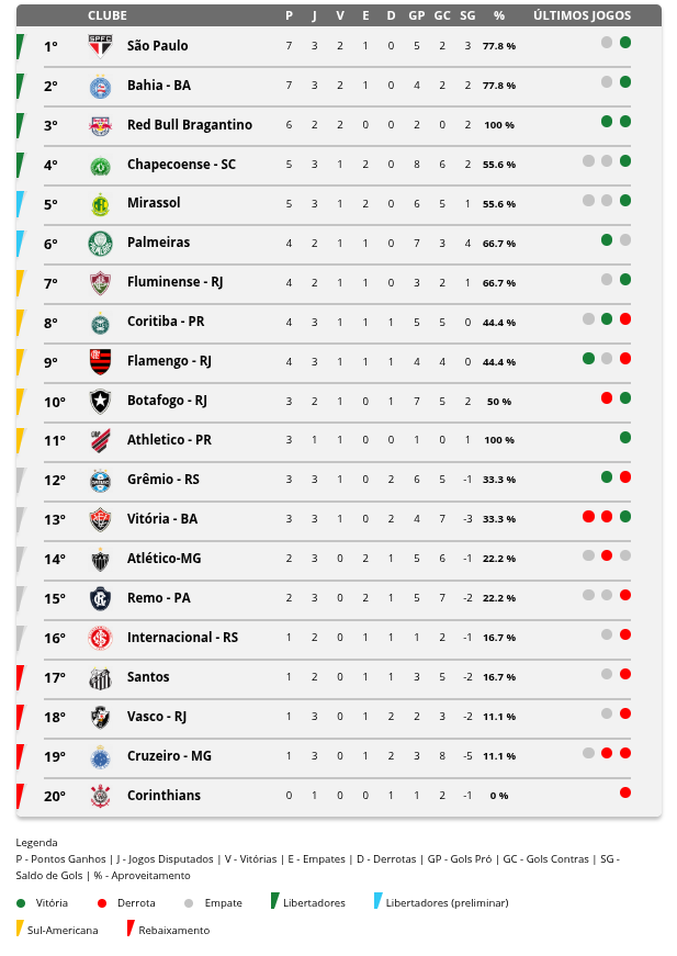 Com este placar na capital mineira, o Atlético ocupa agora a 14ª colocação na tabela, enquanto o Remo aparece logo abaixo na 15ª posição geral. O resultado mantém as duas equipes em uma situação de equilíbrio na classificação, ambas com o mesmo número de pontos após 3 jogos realizados. O técnico Jorge Sampaoli terá que ajustar o sistema defensivo, que permitiu 3 gols do visitante, para os próximos compromissos da temporada de 2026.