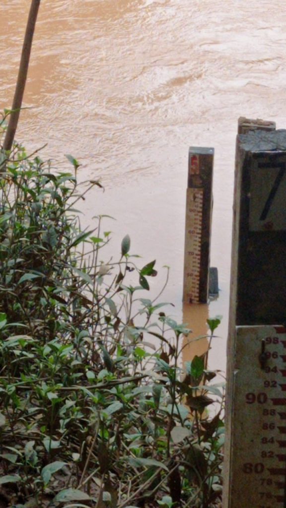 A marcação da subida das águas no Rio Paranaiba, em Patos de Minas, na segunda-feira, 23. Foto: 12 BCBMMG