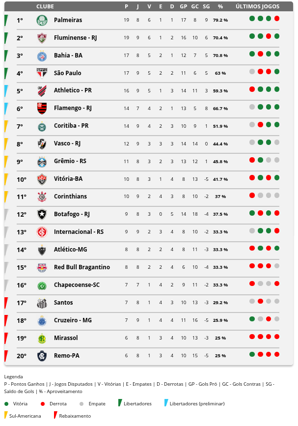 Motivo: 9ª rodada da Série A do Campeonato Brasileiro
