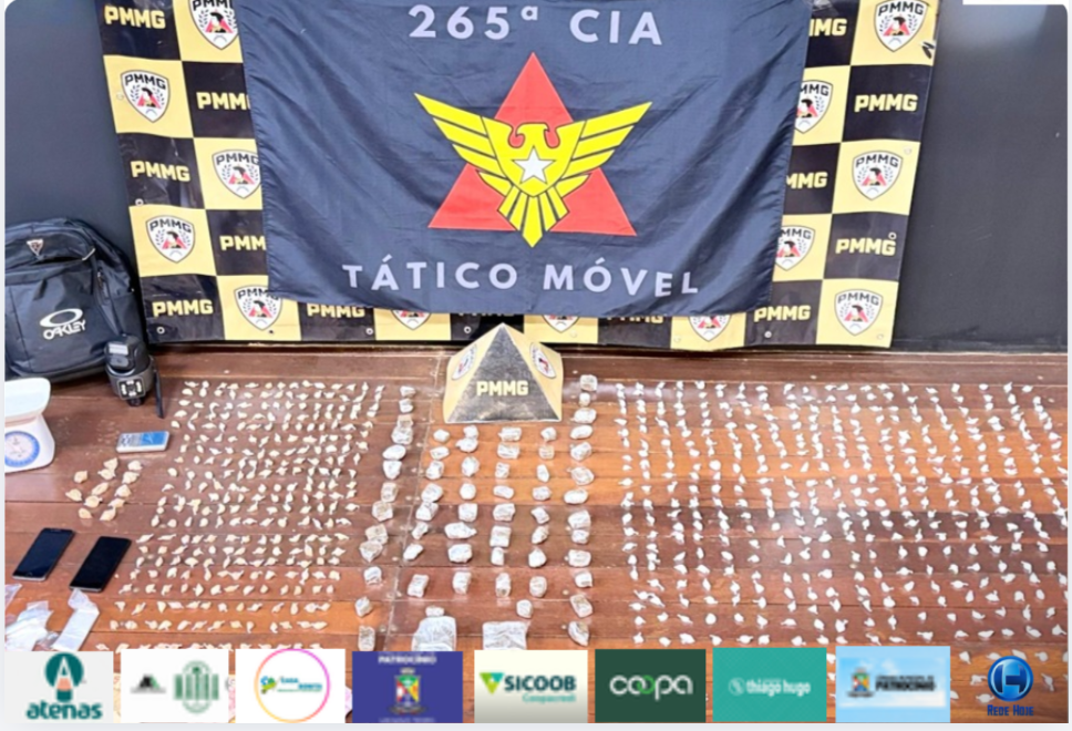 A Polícia Militar realizou uma grande apreensão de drogas em Patrocínio nesta segunda-feira (13 de abril), por volta das 15h15, no bairro Morada Nova, após denúncias anônimas recebidas pelo Disque Denúncia Unificado (181). A operação foi desencadeada a partir de informações repassadas pela comunidade, que indicavam a prática de tráfico de drogas na região. Durante patrulhamento e verificação das informações, as equipes policiais procederam à abordagem de um homem de 25 anos e uma mulher de 28 anos, que estavam no local.