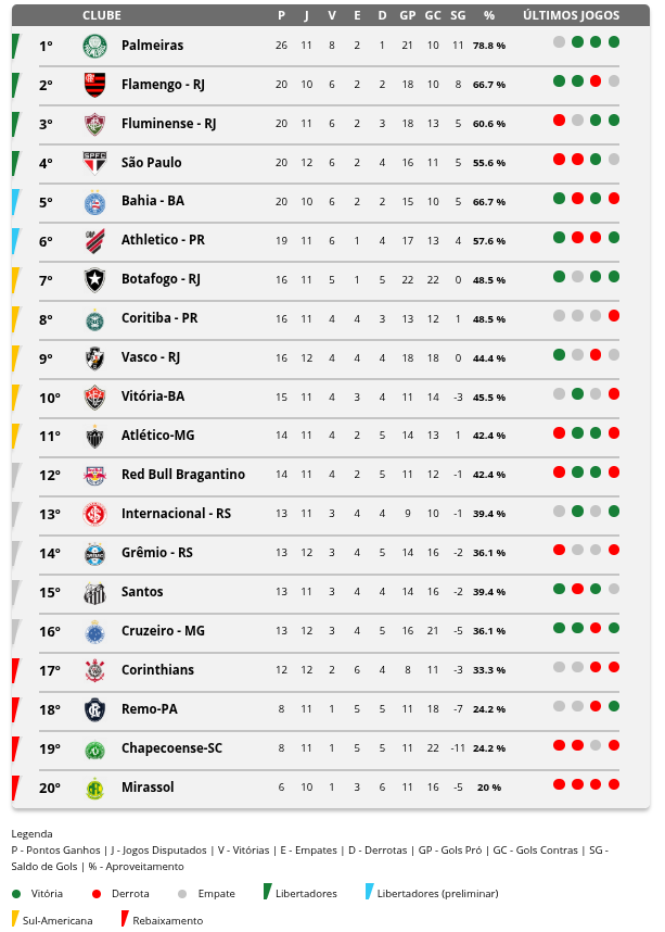 O resultado ainda impactou diretamente outra equipe. Como o Corinthians empatou sem gols com o Vitória na mesma rodada, o Cruzeiro empurrou o time paulista para a zona de rebaixamento ao sair do Z-4. A 12ª rodada do Brasileirão teve, portanto, mudanças significativas na parte inferior da tabela.
