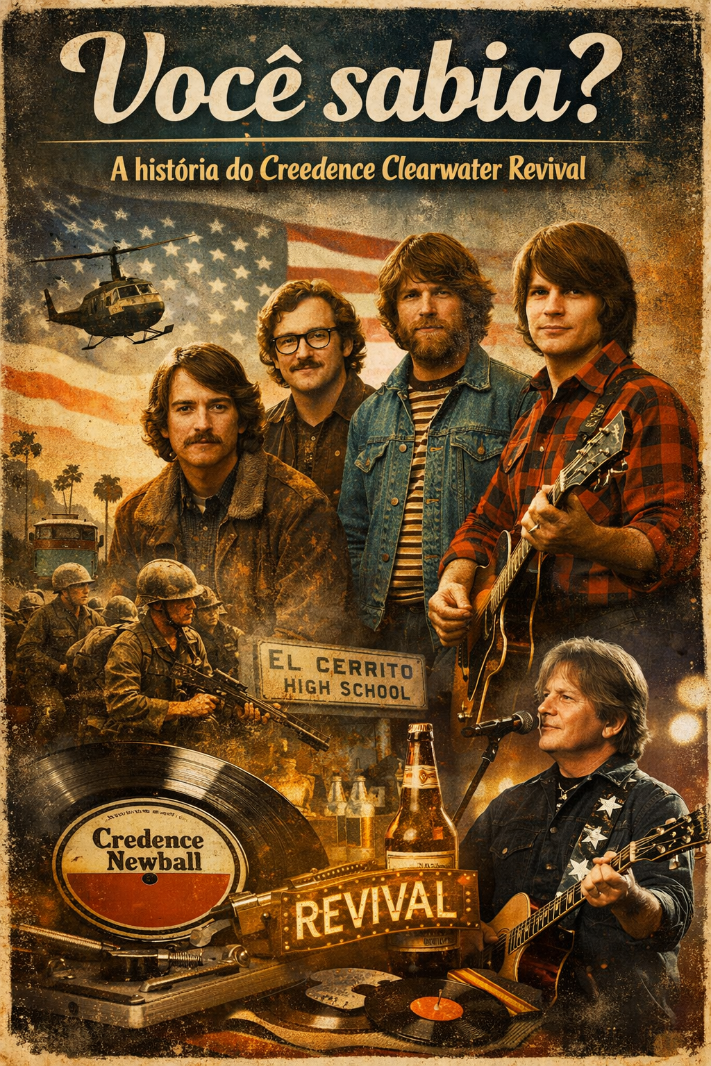 Nós, os amantes da boa música e do rock, voltamos o olhar para a história do grupo Creedence Clearwater Revival, formado por John Fogerty, seu irmão Ton Fogerty, Stu Cook, Doug Clifford, Stiv Gunner e Kurt Griffey, uma banda criada por alunos da escola El Cerrito, na Califórnia, EUA, que enfrentou um período difícil durante a guerra do Vietnã, quando parte do grupo precisou se alistar no exército.