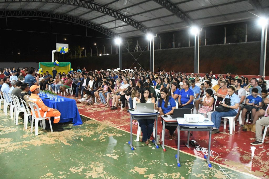 Comunidade e autoridades reunidas na quadra da Escola Municipal Rogério Leonardo de Oliveira durante a audiência. Fotos: Divulgação/Secom PMP