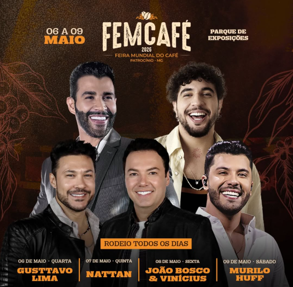O parque de diversões da FEMCAFÉ 2026 começa a funcionar nesta sexta-feira, dia 1º de maio, conforme informações divulgadas pelo Governo Municipal. A atração é parte integrante da programação da Feira Mundial do Café, evento realizado em Patrocínio, e permanecerá aberta para o público até o dia 11 de maio, acompanhando todo o período da festividade.