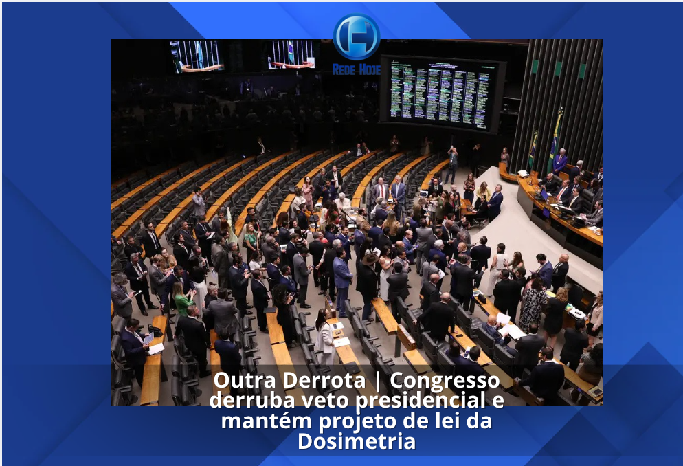 O Congresso Nacional derrubou, nesta quinta-feira (30), o veto do presidente Luiz Inácio Lula da Silva ao projeto de lei da Dosimetria. A proposta aprovada pelos parlamentares reduz a pena de condenados por tentativa de golpe de Estado, especialmente aqueles ligados aos eventos ocorridos em 8 de janeiro de 2023. Com a decisão do Poder Legislativo, o texto segue agora para a fase de promulgação. No Senado Federal, foram registrados 49 votos favoráveis à derrubada do veto e 24 contrários ao projeto.