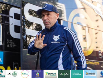 Técnico Lúcio Flávio durante partida da Taça Inconfidência. Foto: Giovanni Mendes/UEC Equipe empata no tempo…