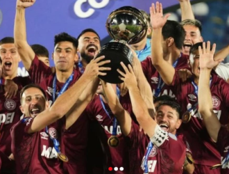 Jogadores do Lanús fazem a festa do título em Assunção (Pedro Souza) Empate sem gols…