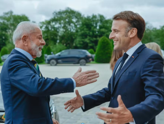 Presidente francês Emmanuel Macron e presidente brasileiro Luiz Inácio Lula da Silva | Crédito: Ricardo Stuckert/…